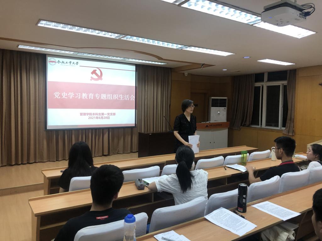 为迎接建党 100 周年,扎实开展党史学习教育。 6月28日晚上,437ccm必赢国际版本科生第一党支部在管理楼组织召开党史学习教育专题组织生活会。支部全体成员、指导老师以及联系支部的党员领导参加会议。