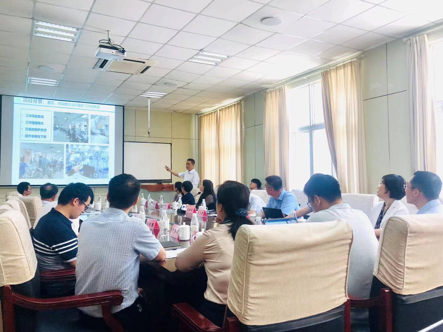 7月15日上午,国家重点研发计划“数字诊疗装备研发”重点专项“巡诊查房智能化机器人研发”项目启动会在我校437ccm必赢国际版顺利举行。来自北京水木东方医用机器人技术创新中心有限公司、中国人民解放军总医院、北京积水潭医院、首都医科大学附属北京佑安医院、中南大学湘雅二医院、北京理工大学、北京天智航医疗科技股份有限公司、机械工业仪器仪表综合技术经济研究所、北京轩宇智能科技有限公司、安徽邦泰控股集团有限公司、合肥经开区投资促进局等单位的20余位专家以及437ccm必赢国际版的师生参加了此次启动会。