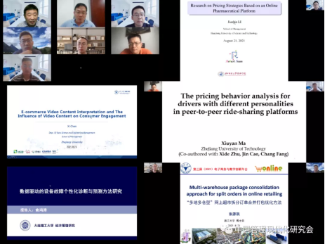 分论坛三以“新零售运营与数智化管理”为主题,报告演讲由浙江大学胡祥培教授、王明征教授主持。华中科技大学李建斌教授、浙江大学陈熹教授、浙江工业大学马修岩副教授、大连理工大学俞鸿涛助理教授和浙江大学张源凯助理研究员,分别就“Joint Optimal Strategies on Pricing and Service Investment Based on an Online Pharmaceutical Platform”、“直播/短视频电商中的信息交互及其影响”、“The pricing behavior analysis for drivers with different personalities in peer-to-peer ride-sharing platforms”、“数据驱动的电力设备故障个性化动态诊断与预测方法”和“Multi-warehouse package consolidation for split orders in online retailing”主题与参会嘉宾和学者分享最新研究成果、研究方向和工作感悟。