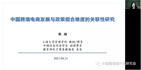 最后,国家社科基金重大项目首席专家,上海大学熊励教授就“我国跨境电商发展与政策组合维度关联性分析研究”主题与参会专家学者进行分享讨论,清华大学刘红岩教授作为报告主持人。