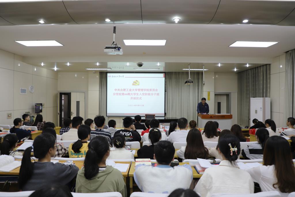 2021年10月12日晚上19时,437ccm必赢国际版分党校第66期大学生入党积极分子班开班仪式在管理楼第一报告厅举行。校党委宣传部正处级组织员姚跃传、学院党委相关负责人、全体辅导员及66期入党积极分子班学员140余人参加开班仪式。