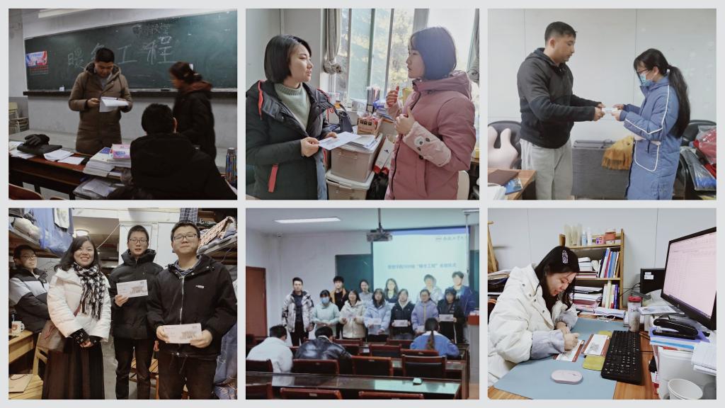 行动中,各年级辅导员将学校“暖冬工程”制作的补助券进行分类,为每一位受助学生填写暖冬寄语,并通过走访寝室、进课堂、进自习室等方式发放给受助同学,与学生们暖心畅谈,带去学校和学院的关怀,鼓励同学们勤奋学习,努力奋斗,常怀颗感恩之心,用力所能及的行动回馈社会。