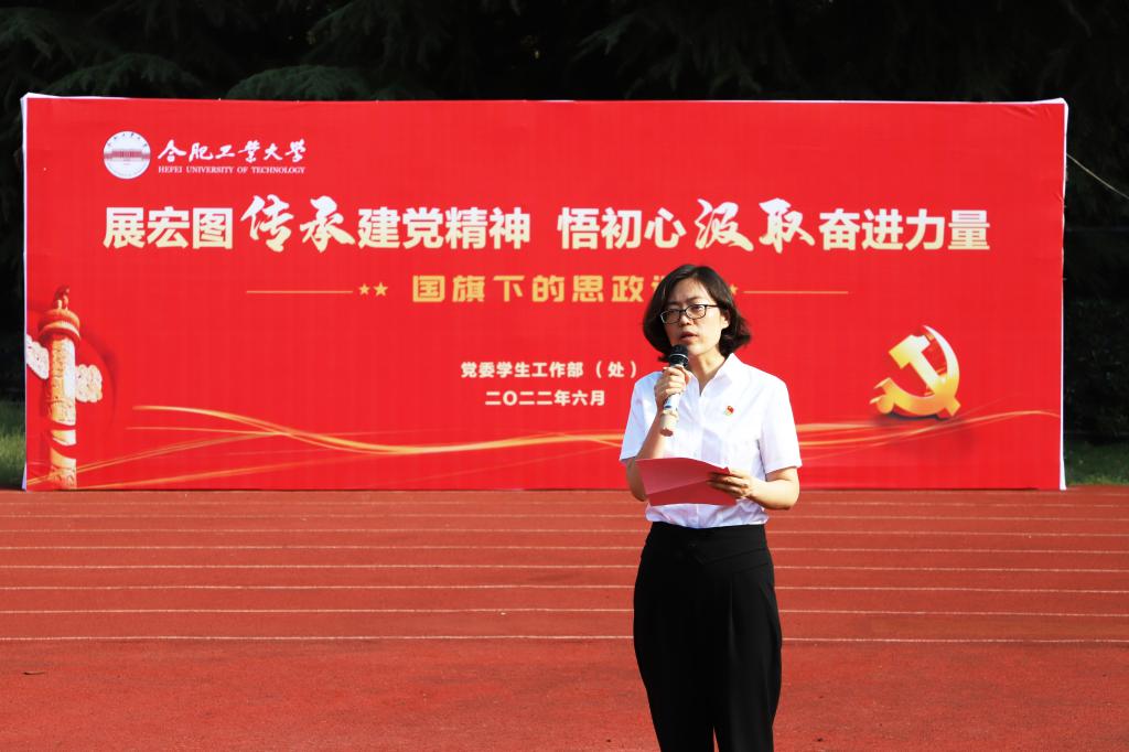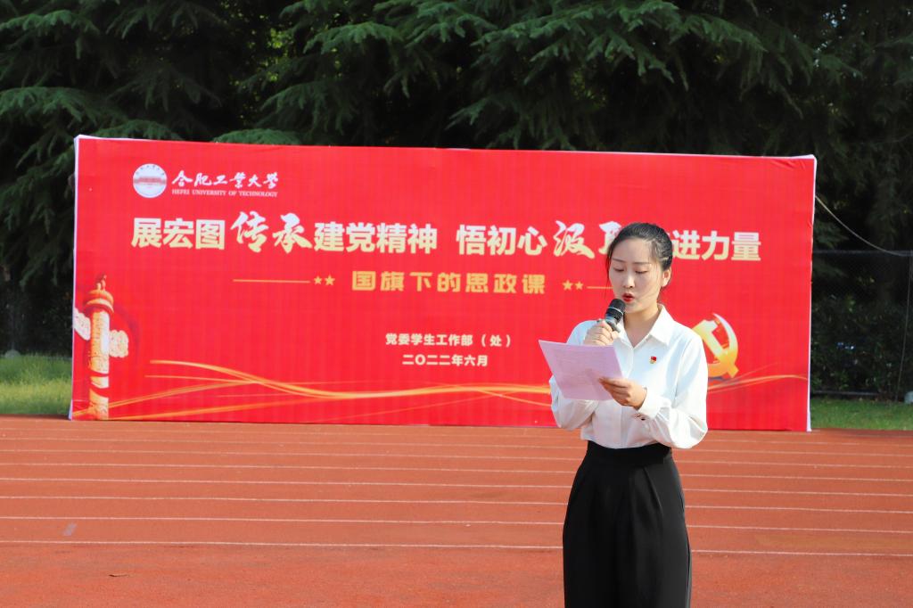 6月20日,437ccm必赢国际版在屯溪路校区西操场开展了升旗仪式暨“展宏图传承建党精神,悟初心汲取奋进力量”国旗下的思政课。学院相关负责人、全体辅导员以及全体本科生、研究生1000余人参加此次活动。