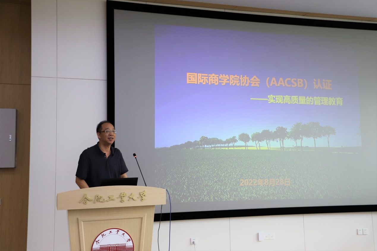刘业政教授介绍了学院AACSB认证工作进展,讲解了认证标准和学院认证历程。姚禄仕教授分享了自己的科研工作经验。