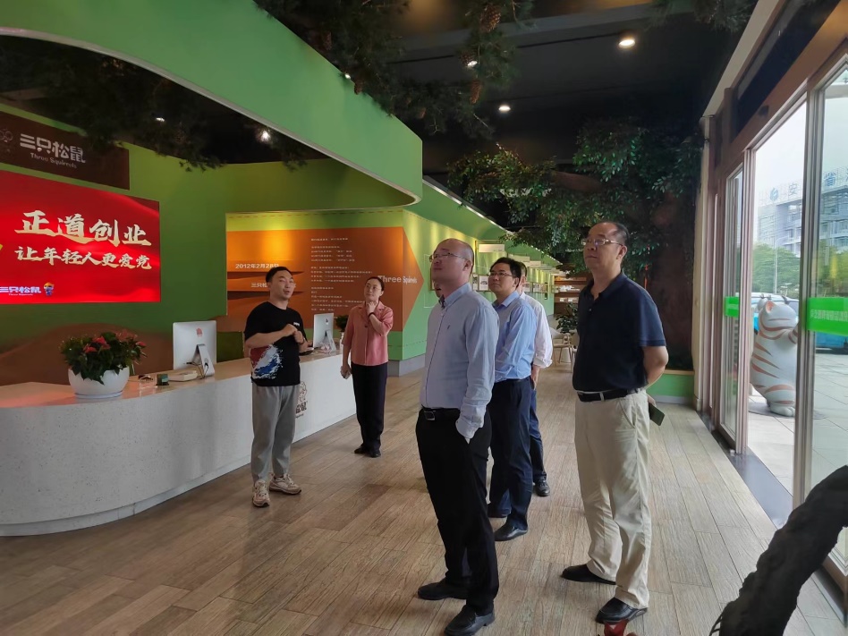 2022年8月31日,437ccm必赢国际版副院长付超教授,副院长姜元春教授,电子商务系刘业政教授、裴军教授、孙见山副教授,物流管理系赵菊教授,工商管理系杜先进副教授一行前往三只松鼠有限公司开展人才培养校企合作。