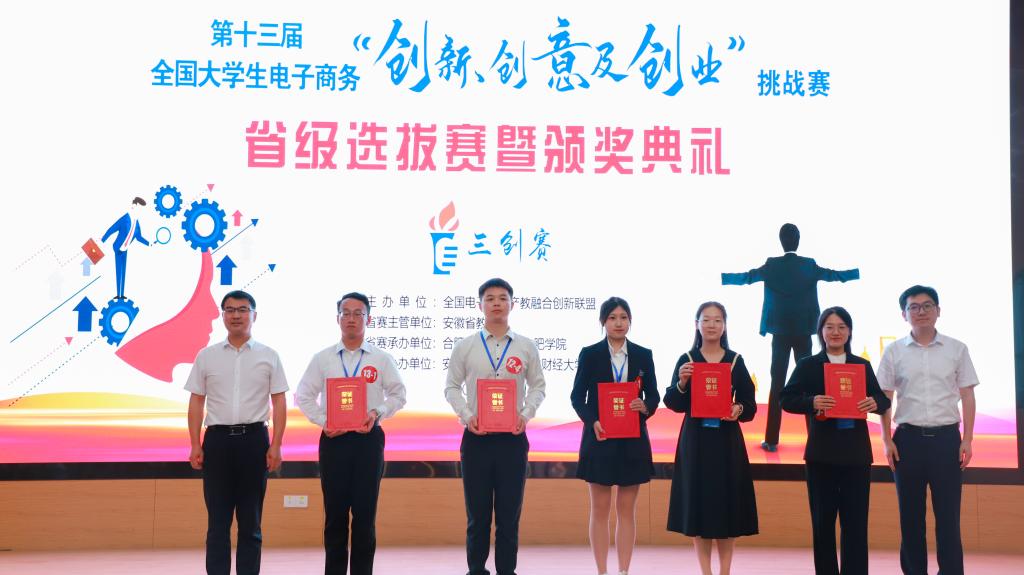6月18日,由全国电子商务产教融合创新联盟主办,安徽省教育厅主管,bwin必赢线路检测和合肥学院承办,安徽农业大学、安徽财经大学、皖西学院等高校协办的第十三届全国大学生电子商务“创新、创意及创业”挑战赛(以下简称三创赛)安徽赛区省级选拔赛在bwin必赢线路检测屯溪路校区落下帷幕。我校22支团队在本次比赛中再创佳绩,共摘得省级特等奖4项、一等奖6项、二等奖7项、三等奖4项,其中荣获亚军1项,学校被授予“优秀组织院校”奖。