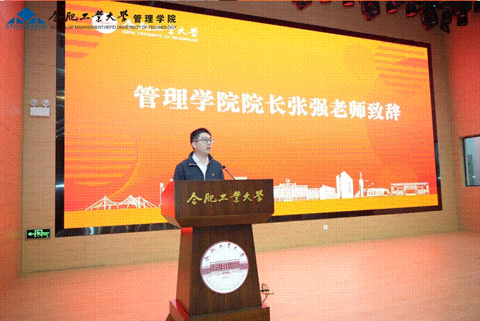 院长张强在致辞中介绍了学院近年来在人才培养、科学研究和社会服务等方面取得的突出业绩,立足新时代,学院继续与校友们携手奋进,坚持向未来看、往实里做、朝尖端走、望顶峰攀,为中华民族伟大复兴作出合工大管院人更大的贡献!