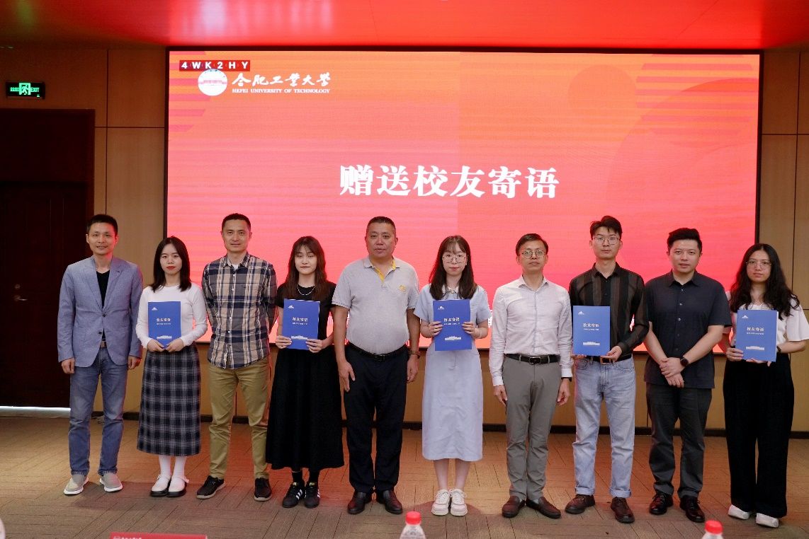老校友代表胡永乐、陈亮、卢晓荣、刘彬、束剑向新校友代表蒋文文、热娜、袁一欣、陈月月和罗秀坪赠送寄语。“守正创新,持续精进;做好本职才能梦想未来;。。。”四十余位学长的谆谆寄语,校友浓情跃然纸上。