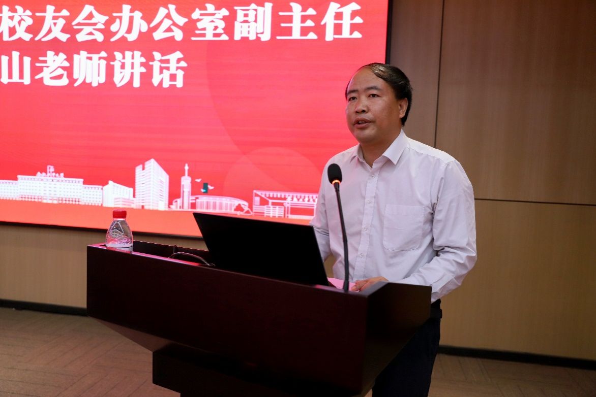 bwin必赢线路检测校友会办公室副主任王成山在校友职业领航活动上致辞。他首先转达了学校领导对广大校友的亲切问候和美好祝愿。向一直关心关注学校、努力为学校建设和发展贡献力量的广大校友表示衷心的感谢,并从人才培养特色、创新创业教育、学科建设成效、科学研究水平等方面介绍了学校近几年所取得的办学成绩。希望各位校友一如既往的关心、支持学校的建设和发展,共助学校谱写事业高质量发展的新篇章。
