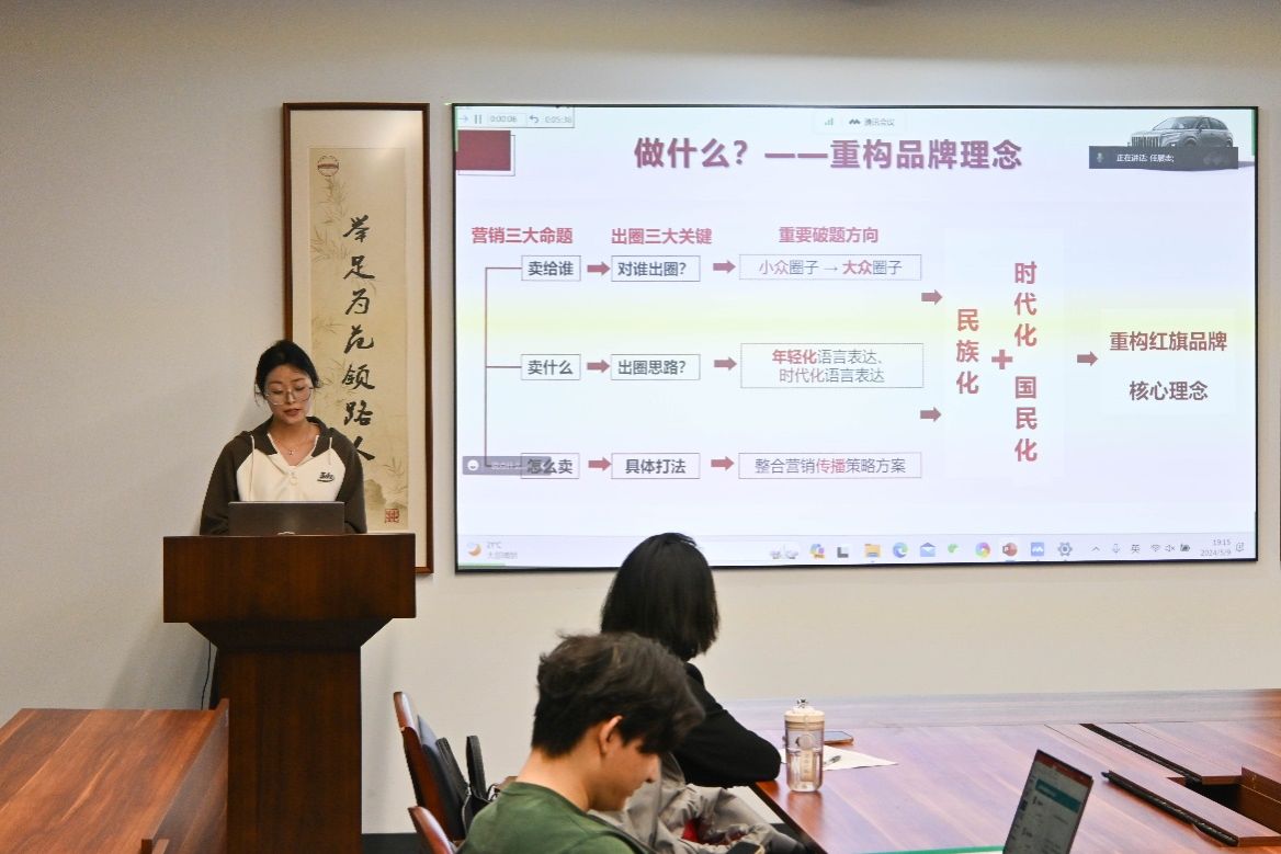 闫安老师在致辞中强调了437ccm必赢国际版学生深入企业并参与市场研究和商业策划活动的必要性,表示“市策大赛”为学生提供了一个专业实践和营销能力锻炼的平台。同时,闫安老师表明了此次大赛时间的紧迫性,对参赛学生给予了充分肯定。