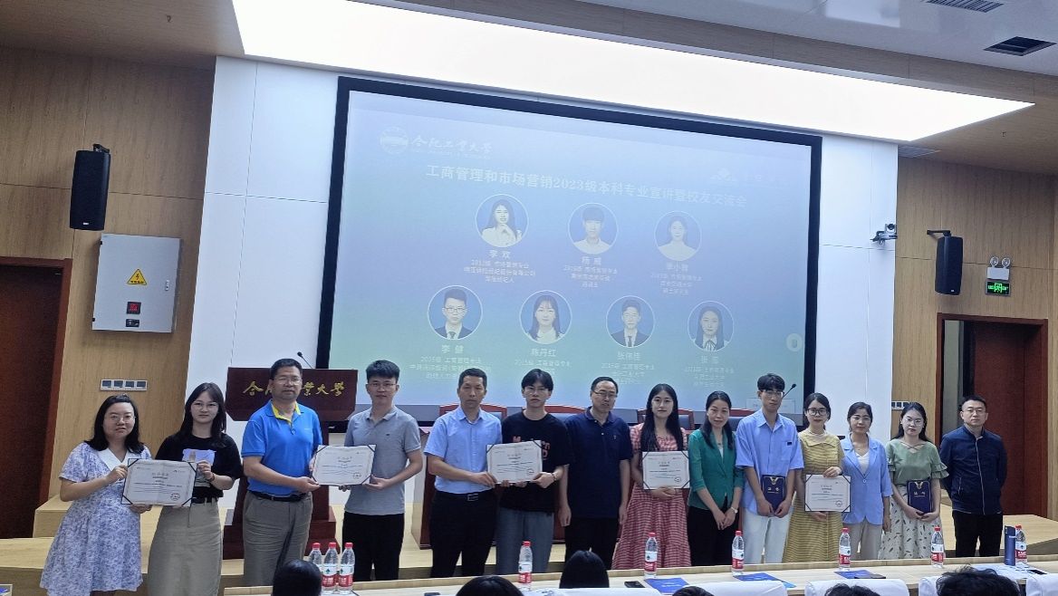 为了提升2023级工商管理类本科生对于工商管理和市场营销两个专业的理解与认识,增强同学们对专业的认同感、兴趣度和自信心,进一步帮助同学们明确自身的发展目标,顺利做好专业选择规划。2024年6月22日,工商管理系组织召开工商管理和市场营销专业宣讲活动。为确保宣讲效果,以及更好地促进校友与在校师生的沟通交流,特地邀请来自明亚保险经纪股份有限公司的李欢校友(2013级市场营销专业)、中建国际投资(安徽)有限公司的李健校友(2015级工商管理专业)、湖州学院的陈丹红校友(2015级工商管理专业)、重庆市大足区龙岗街道的杨威校友(2016级市场营销专业)、437ccm必赢国际版在读博士研究生张伟佳同学(2016级工商管理专业)、西安交通大学437ccm必赢国际版在读硕士研究生季小雅同学(2019级市场营销专业),以及2021级工商管理专业张蕊同学进行现场交流分享。工商管理系李锐、张鑫、冯南平、彭张林、闫安、龙丹、冯晨鹏、薛旻、赵能桂等老师,教学办公室张科老师、辅导员王语韩老师,以及2023级工商管理类全体本科生参加本次活动。