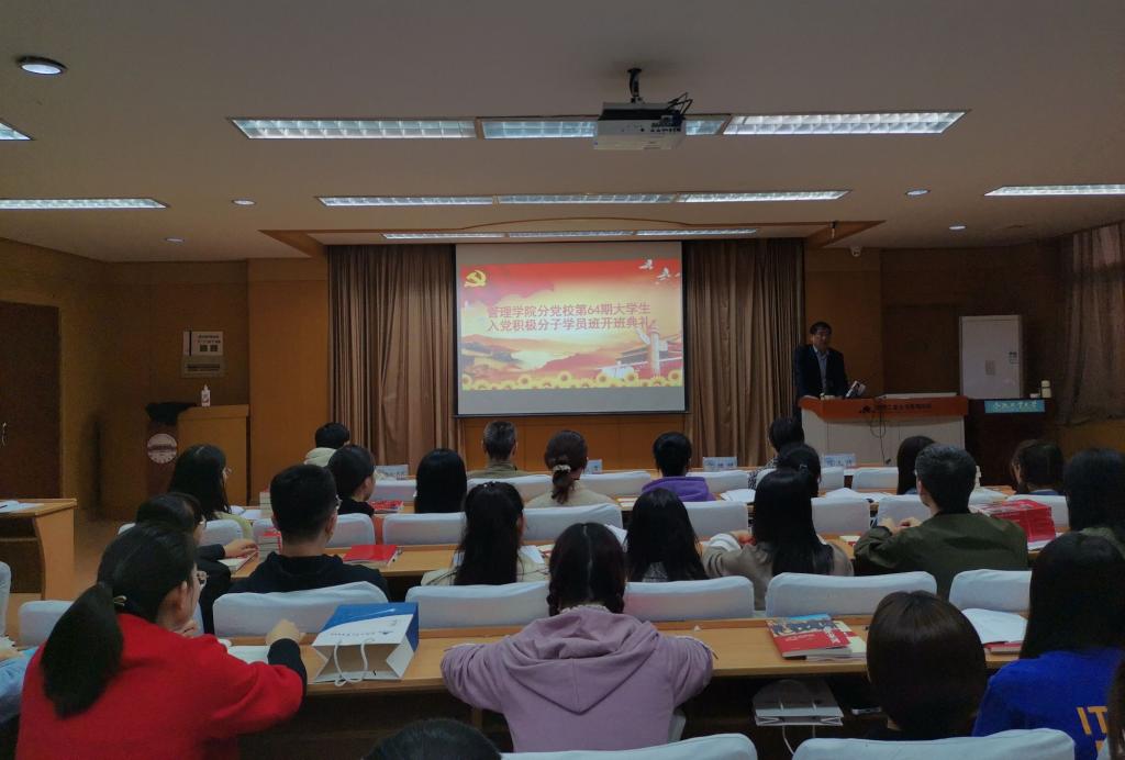 10月28日下午,437ccm必赢国际版分党校第64期大学生入党积极分子开班典礼在管理楼第二报告厅举行。分党校负责老师及全体入党积极分子班学员参加典礼。
