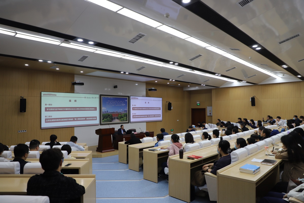 党课以培养德智体美劳全面发展的时代新人为主题,以“第二课堂成绩单”建设探索与实践为切入点,学习贯彻习近平新时代中国特色社会主义思想,用党的创新理论铸魂育人。