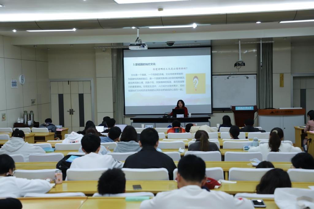开班仪式后,校团委副书记孙彩霞以“学团史、知团情,坚定不移跟党走”为题,为全体学员上了一堂高质量的团课。孙彩霞从团的基础概念入手,向学员们介绍了共青团的创立和发展、性质和职责等,结合历史发展与当前热点话题,重点围绕如何忠诚爱国,坚定不移跟党走展开讲授。她强调对于青年学生而言,爱国主义的内涵是爱祖国的大好河山,爱祖国的骨肉同胞,爱祖国的灿烂文化和爱自己的国家;新时代爱国主义要坚持爱党、爱国、爱社会主义相统一,要维护祖国统一和民族团结,要尊重中华民族的历史和文化,要坚持立足民族又面向世界;忠诚爱国坚定不移跟党走要维护和推进祖国统一,要促进民族团结、增强国家安全意识。