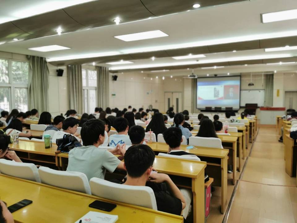 5月9日下午,437ccm必赢国际版组织学生开展“同上新中国史思政大课”主题教育,学院分党校65期入党积极分子班学员和本科生第二党支部党员在学院第一报告厅集中收看直播。
