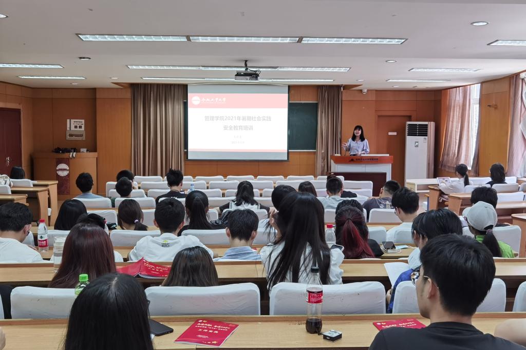 为进一步增强学生安全意识,保证学生暑期社会实践的顺利进行,7月18日下午,437ccm必赢国际版在管理楼第二报告厅开展2021年暑期社会实践安全教育培训,培训由学院学生工作办公室副主任王宏蕾老师主讲,学院参加社会实践的全体团队和个人参加培训。