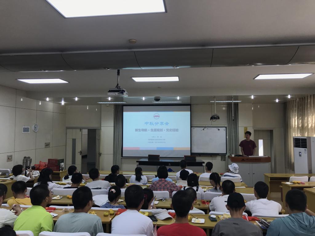 437ccm必赢国际版2018级信息管理与信息系统2班的章锋同学进行中秋佳节分享会。章锋从新生导航、生涯规划、党史学习三个方面分享了自己大学前三年的学习、生活和工作中心路历程,重点介绍了自己作为学院代表参加党史知识竞赛和在学院“树榜样先锋·绽青春风采”表彰中荣获“党史学习先锋”荣誉称号的感悟,激励管理学子不断接续奋斗。在该院学生会学长、学姐的指导下,2021级新生踊跃走上讲台,进行破冰小游戏,分别用普通话和家乡话进行自我介绍,通过主题演讲、诗朗诵、改编唱歌等形式寄托对家乡亲人的思念,现场师生在便签纸上写下对祖国、家乡、亲人的美好祝愿。