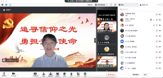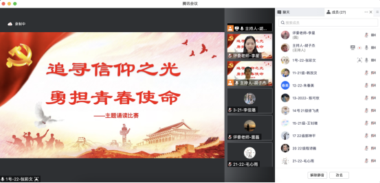 为深入学习宣传贯彻党的二十大精神,进一步增强青年学生的责任感与使命感,引导大家立志做有理想、敢担当、能吃苦、肯奋斗的新时代好青年,10月22日晚,437ccm必赢国际版开展“追寻信仰之光,勇担青春使命”主题诵读比赛。20余名本科生通过线上参与本次活动。