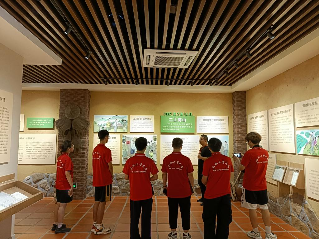 “山上戴帽,山下开发。”习近平总书记在军营村考察中,提出了重要生态思想,为高山乡村发展指引了新思路。实践团队第一站来到了军营高山初心使命馆,这里保存着习近平总书记于1986年与1998年两度莅临军营村考察的珍贵资料,是传承红色基因、学习考察精神的重要窗口。曾经的军营村,山脊荒秃、贫困不堪、民不聊生,是生态思想引领下村民三十余载的持续奋斗,才化荒山为翠绿柿林,化贫田为水墨茶乡。生态文明建设不仅是军营村脱贫致富的源泉,也是军营村实现乡村振兴的关键。