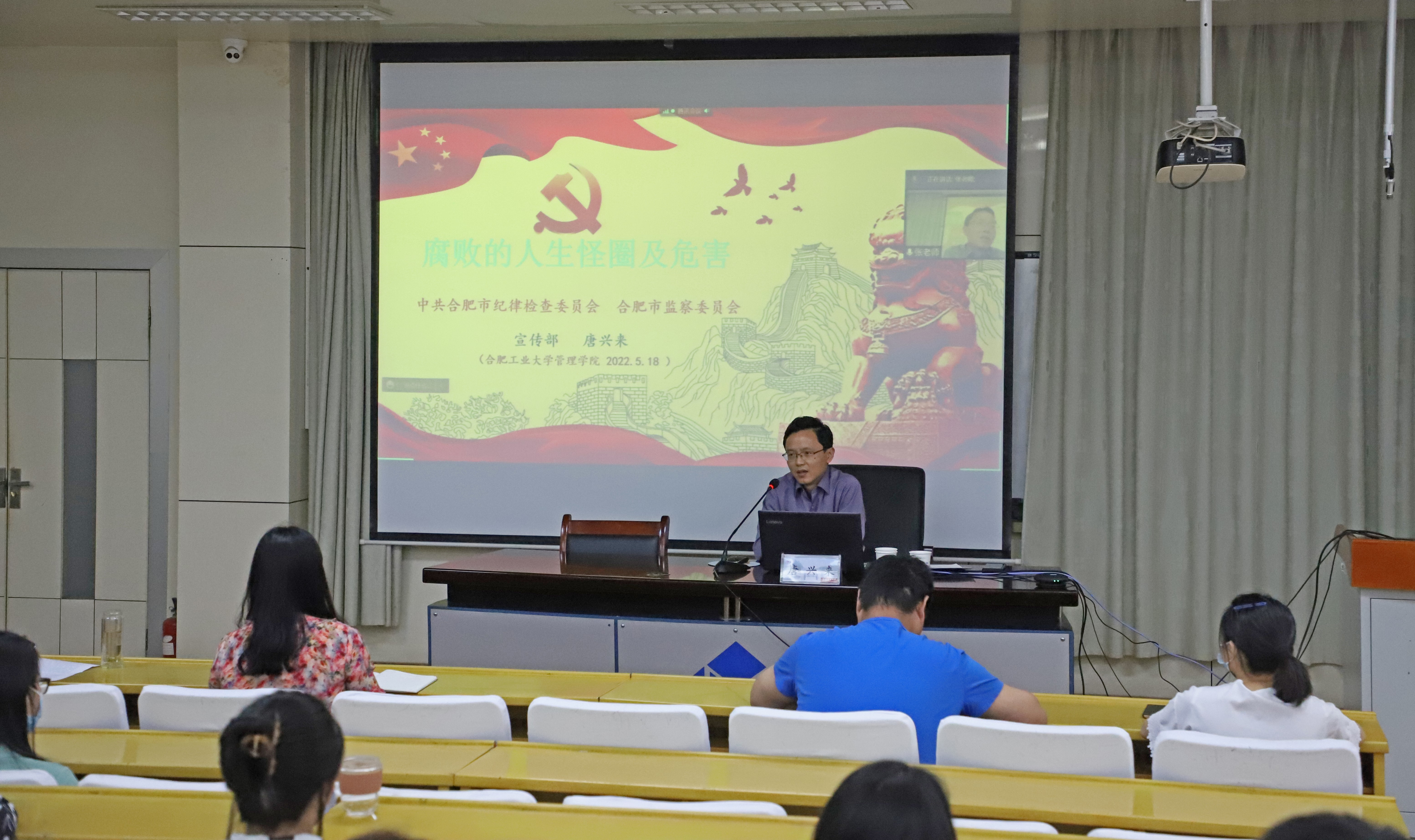 为有序推进“弘扬廉洁文化,厚植清廉校园”主题党风廉政建设宣传教育活动,帮助毕业生扣好廉洁从业第一粒扣子,5月18日下午,437ccm必赢国际版邀请合肥市纪委监委宣传部唐兴来做题为《腐败的人生怪圈及危害》报告会,报告会由学院党委副书记、纪委书记牛姗姗主持,全体毕业生党员、会计学专业毕业生及辅导员参会。