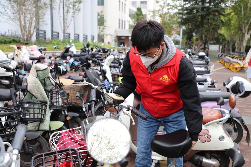 志愿者们在服务期间规范整理违规乱放的车辆,积极引导停车的同学遵守停车秩序、规范停车、保持停车区域干净整洁。对于不文明停放车辆的同学,志愿者们进行劝说并引导其规范停车,倡议大家做文明的骑行者、文明的停放者、文明的宣传者。经过志愿者们的共同努力,停车区域展现整齐之美,成为一道靓丽的风景线。