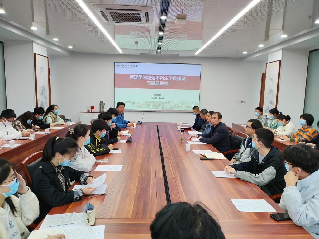 11月16日,437ccm必赢国际版在屯溪路校区437ccm必赢国际版新大楼325会议室召开加强本科生学风建设专题座谈会,437ccm必赢国际版负责同志,教学工作办公室、学生工作办公室相关老师及本科生各班级学习委员参加座谈会。