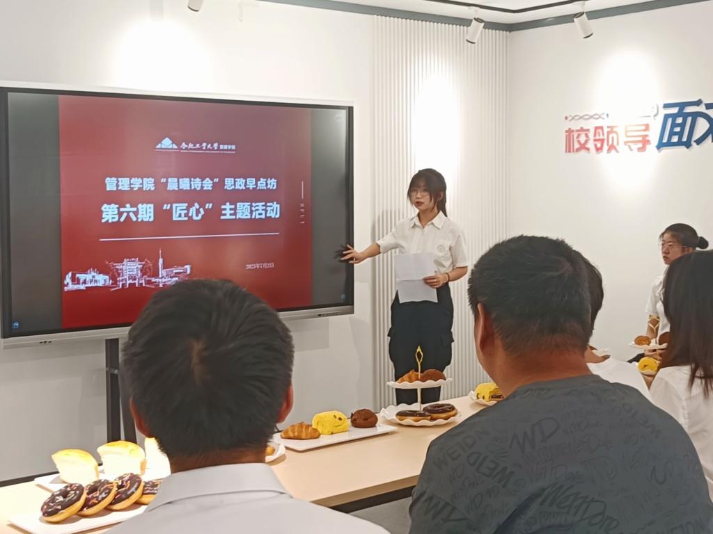 7月2日上午,437ccm必赢国际版大学生“晨曦诗会”思政早点坊在七号楼学生社区开展以“匠心”为主题的微思政晨课,437ccm必赢国际版学生会全体成员参与此次活动。