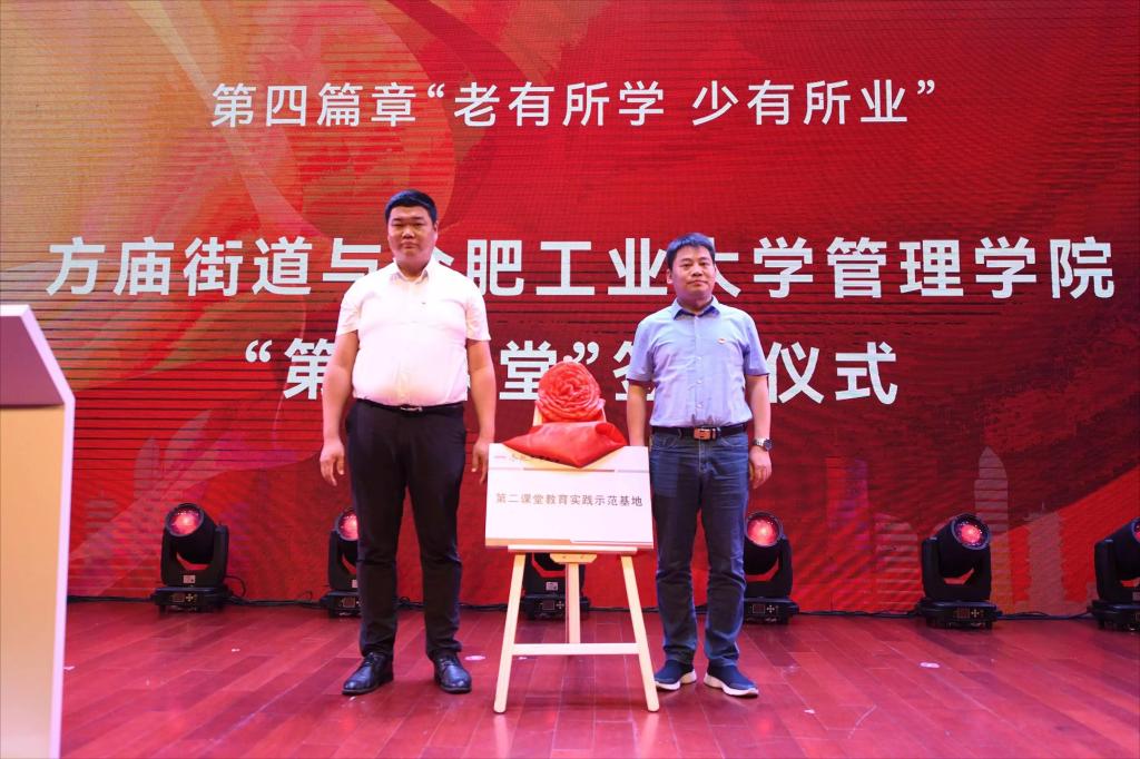 本次“第二课堂”教育实践示范基地签约揭牌仪式是学院落实“三全育人”“五育并举”的重要举措。学院将依托瑶海区方庙街道进一步强化党建引领服务社区治理,引导学生投身基层实践,用心用力用情解决一线问题,增进社会责任担当,在实干中扎实本领,成长为堪当大任的时代新人。