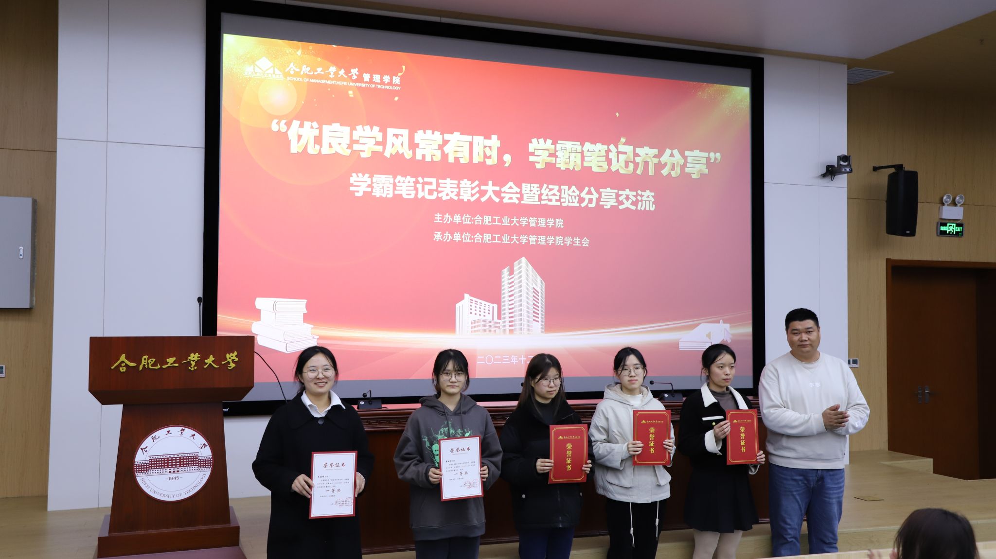 12月10日,437ccm必赢国际版学霸笔记表彰暨经验分享会在屯溪路校区工程管理与智能制造研究中心会议楼第一学术报告厅举行。437ccm必赢国际版学生工作办公室老师,受表彰学生、低年级学生骨干代表共150余人参会。