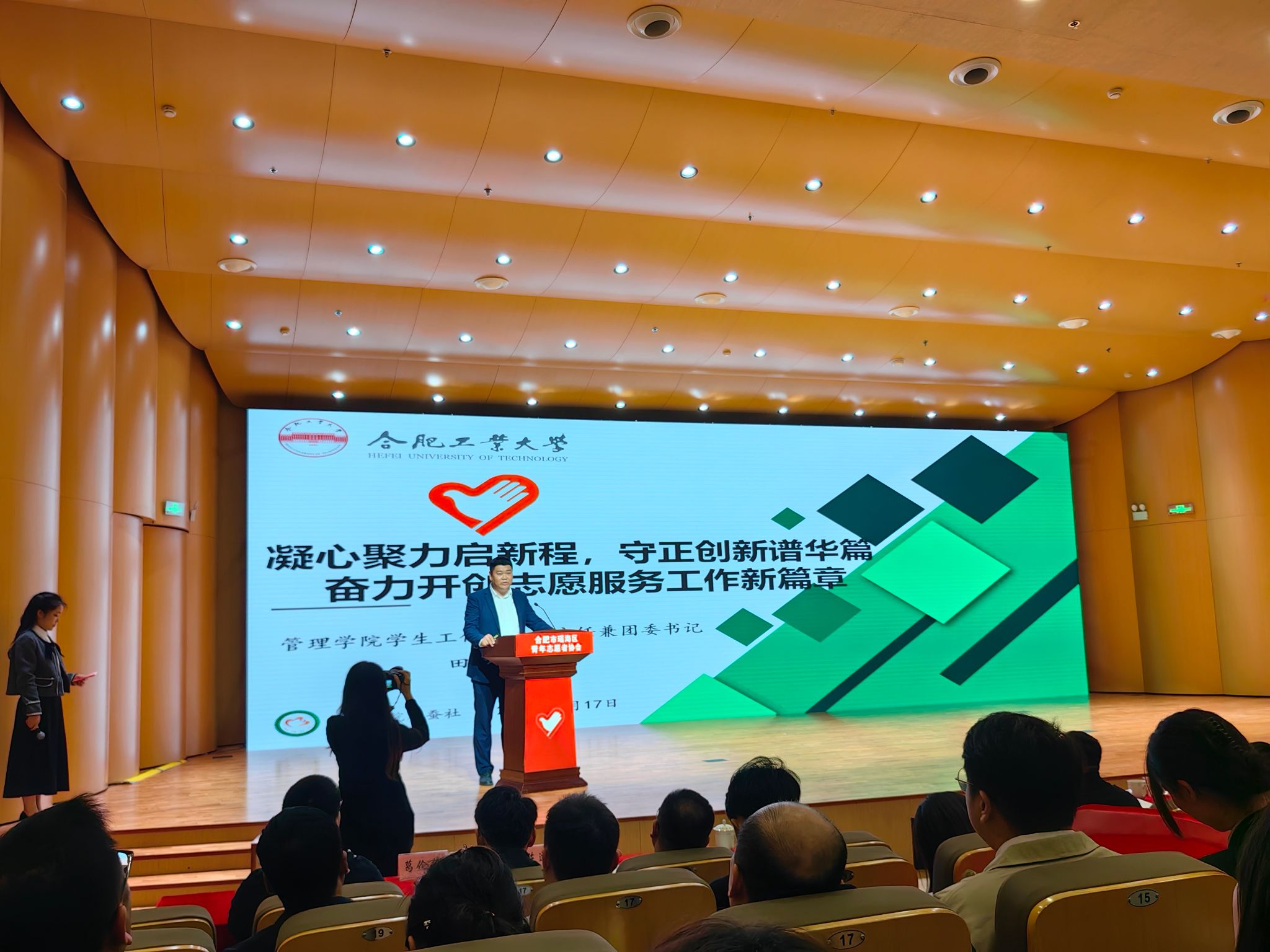 大会审议通过《瑶海区青年志愿者协会章程》(修订案),选举产生瑶海区青年志愿者协会第二届理事会、常务理事会及领导机构,437ccm必赢国际版青年志愿者协会当选理事单位,现场为437ccm必赢国际版青年志愿者协会、安徽医科大学青年志愿者联合会、安徽艺术学院青年志愿者协会等15家理事单位授牌。作为瑶海区青志协团体会员单位,437ccm必赢国际版团委书记田文祥应邀作题为“凝心聚力启新程,守正创新谱新篇,奋力开创志愿服务工作新篇章”的交流汇报。与会人员在瑶海区青志协副会长朱行兵的带领下集体宣誓。区委副书记陈莉莉、团市委副书记戴军分别进行讲话,团省委宣传部部长方芳进行讲话并就持续有效开展志愿服务项目进行现场培训。