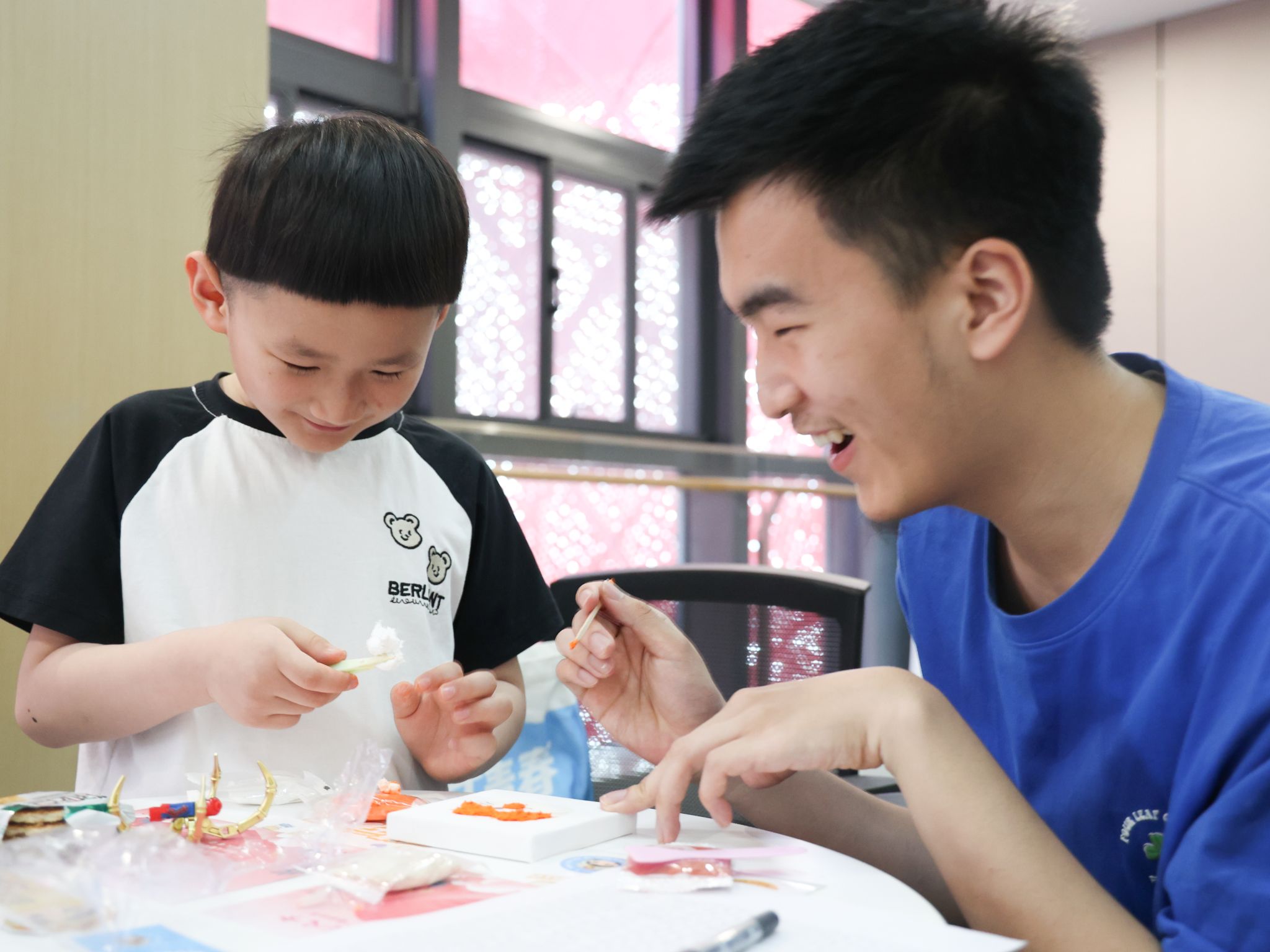 为了让孩子们度过一个难忘的六一,大学生志愿者还为孩子们准备了手工课堂。期间,孩子们和结对大学生志愿者一起合力制作纸浆画,参观安徽(合肥)12355青少年服务台,体验服务台的多个服务项目,并观光游览瑶海区青年创意田园,体验传统蓝印花布-植物印染活动。孩子们纷纷表示,这次活动让自己开心难忘,认识了好多的小伙伴和哥哥姐姐,领到了自己一直想要的小“心愿”,是过得特别开心的一个儿童节。