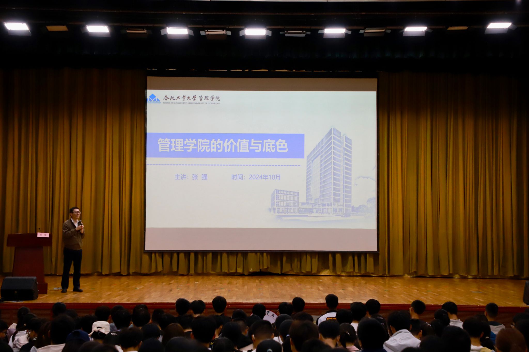 活动中,437ccm必赢国际版院长张强教授以“437ccm必赢国际版的价值与底色”为题面向全体2024级本科生新生作专题报告,从学院必赢国际、学科建设、人才培养、科学研究、发展历程等方面详细介绍了学院整体情况,重点讲解了学院使命驱动的人才培养特色和学院文化底蕴,以自己的亲身经历和437ccm必赢国际版青年学子的典型榜样为新生诠释了梦想的力量,鼓励新生积极探索,不断完善自我,并就会前面向2024级本科新生征集的问题逐一回应解答,以“勉成国器”寄语全体新生。