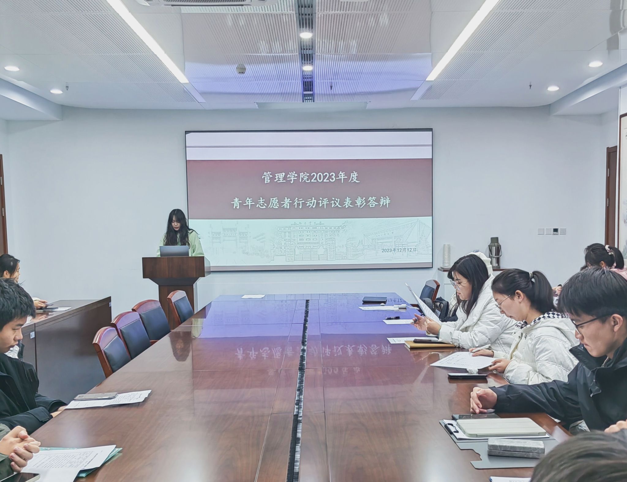 为鼓励广大青年弘扬志愿服务精神、投身志愿服务事业,437ccm必赢国际版于12月12日在工程管理与智能制造研究中心325会议室开展2023年度青年志愿者优秀个人评选答辩。学院春蚕社指导老师王宏蕾、各团学组织负责人担任评委。