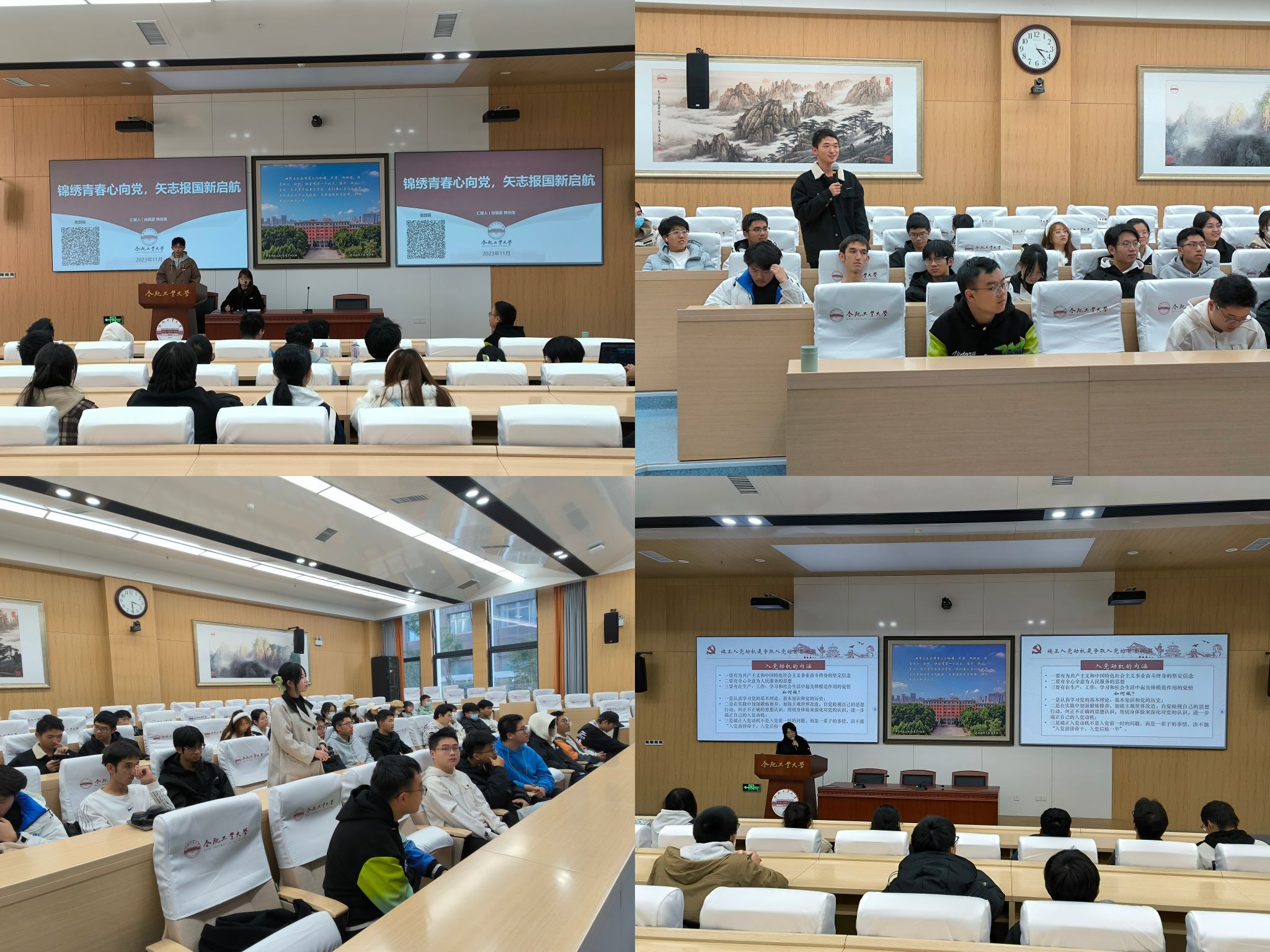 报告中,几位党员首先依次分享了自己的入党初心,明确的告诉同学们向党组织靠拢的过程中不忘初心、不移其志是至关重要的。随后,他们向新生同学介绍了入党发展的基本流程、党支部作用发挥以及优秀的党员同学的先锋模范事迹。最后,希望大一年级的同学们坚定理想信念,补足精神之钙,以锦绣青春投身工业报国的宏伟航程。