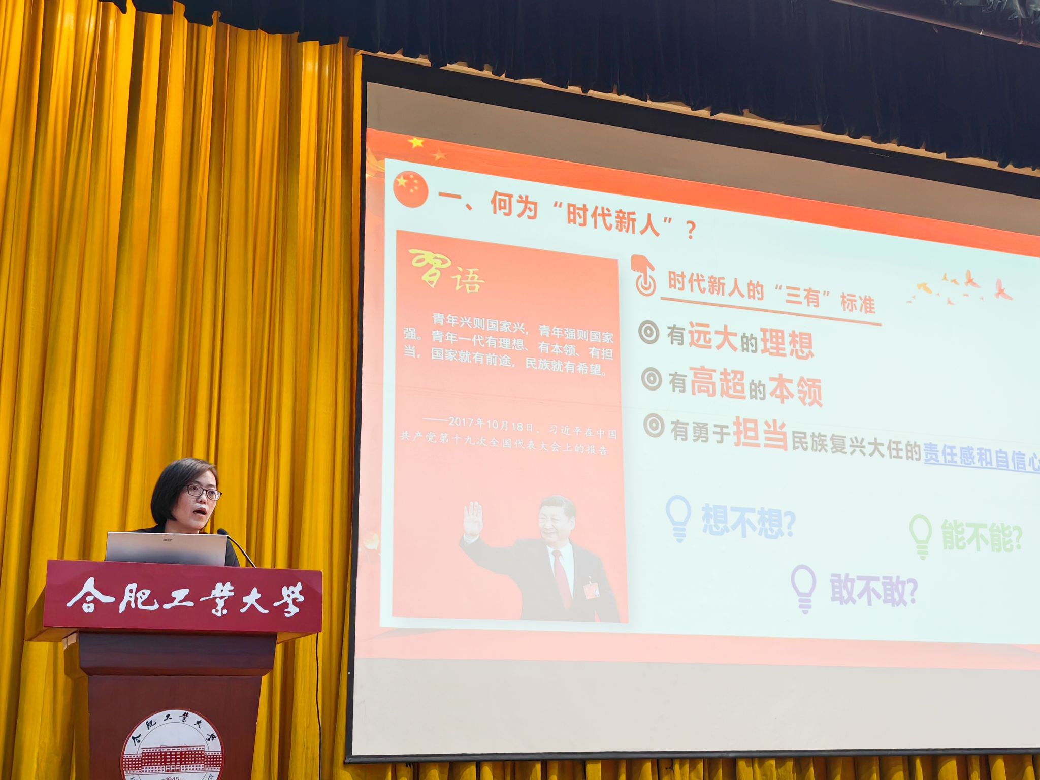 牛姗姗围绕何为“时代新人”、如何成为“时代新人”两大问题,带领同学们学习了习近平总书记对青年的寄语、新时代及时代新人的内涵,引导新生树立远大理想,练就过硬本领,培养勇于担当民族复兴大任的责任感和自信心。她结合学院发展历程,用身边师生榜样的感人事迹激励新生将个人梦想与国家需要紧密结合,争做道德高尚、本领高强、善于创新、踏实肯干的新时代奋斗者。