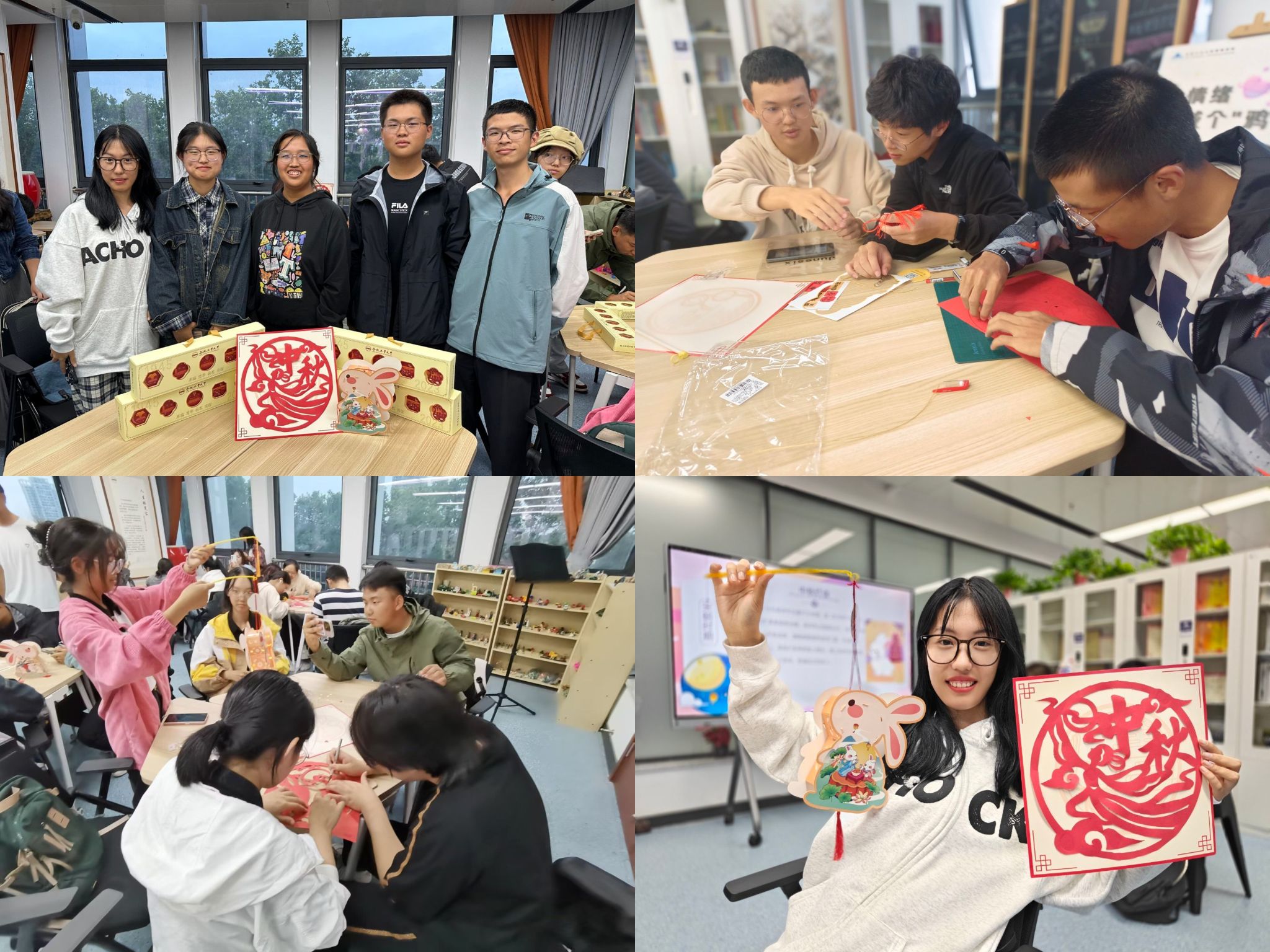 中秋诗会,以文会友。同学们搜集名诗、分享爱诗、提笔作诗,工管类23-4班任書萱现场朗诵《水调歌头·明月几时有》,唤醒同学们深入骨髓的中华传统诗文化基因。中秋乐会,以音会友。大数据23-1班许卢鑫小提琴演奏《渔舟唱晚》、工管类23-3班武玉勃巴乌吹奏《月光下的凤尾竹》等经典曲目,为同学们带来的悠美浪漫的感受,赢得掌声阵阵。中秋灯会,以巧会友。同学们结伴制作富有节日元素的月兔灯笼和剪纸作品,细心体验传统文化的魅力和精妙。中秋食会,以饼会友。活动尾声,两位辅导员老师将中秋月饼礼盒发送给现场学生,让工大特色月饼在学生口中和心中久久留香。