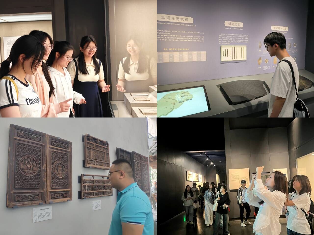 学员们走入安徽省博物院,在浓厚的传统文化氛围中开展实践学习。在安徽文明史陈列展览中,从200多万年前的远古遗迹和石器时代的珍贵文物,再到不同历史时期的文化见证,学员们漫步历史长河,感叹于安徽地区人类文明的源远流长。在徽州古建筑展区,展厅完整复原了徽派民居代表建筑,在儒家思想浸润下,古建构件上的雕刻作品无论是人物故事、花鸟鱼虫,还是吉祥纹样,都承载着徽州人对美好生活的祈愿,以及对忠孝节义等传统美德的尊崇,生动展现了徽州文化中人与自然和谐共生的理念,也让学员们直观领略到徽派建筑独树一帜的美学风格与营造智慧。