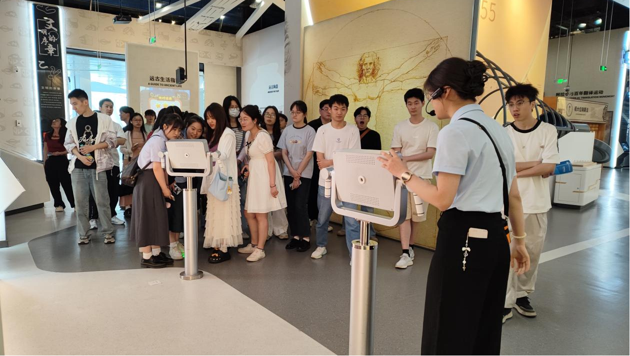 在参观过程中,学生们怀着浓厚的兴趣,深度体验了馆内前沿的科技展项。从裸眼3D虚拟现实的震撼场景,到全息成像的奇妙展示,再到空气触摸互动系统的灵敏反应,大家沉浸式感受了尖端科技的魅力。通过亲身体验,党员们深刻认识到科技创新对推动社会进步、改变生产生活方式的巨大力量,对党的二十大报告中关于“实施科教兴国战略,强化现代化建设人才支撑”的战略部署有了更深层次的理解。