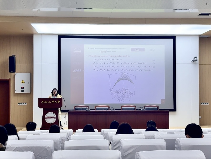 活动伊始,吴雨晴首先围绕数智化供应链与企业关系管理研究方向,聚焦企业供应链风险管理核心议题,阐述了风险响应战略对提升供应链韧性的重要意义,其相关研究成果已发表于SCI中科院1区期刊《Information&Management》。随后,她结合自身在投论文经历,拆解了从选题构思、文献研究、数据调研到实验验证、投稿修改的完整科研流程,重点推荐“多项式响应面分析”实证研究方法,通过案例说明其跨领域通用性,并分享了在线学习资源。此外,她还就提前规划、多线程工作、AI工具应用及科研心态调整等方面分享实用心得。