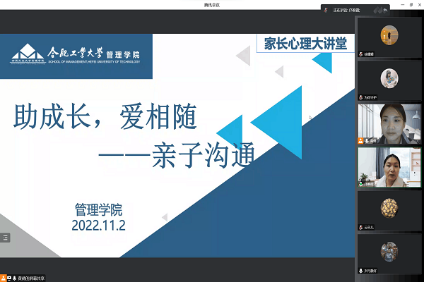 为加强家校联系,进一步提升家长亲子沟通的能力,更好地引导家长与学院共同做好学生心理关怀的工作,437ccm必赢国际版于11月2日晚上以腾讯会议的形式线上举办了主题为“助成长,爱相随”的家长心理大讲堂活动,邀请国家二级心理咨询师邝春霞主讲,学院各年级学生家长积极参加。