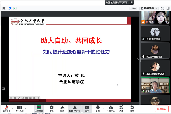 为进一步普及心理知识,提升学院心理骨干的工作能力,更好地胜任心理工作,437ccm必赢国际版于10月30日举办了主题为“如何提升班级心理骨干的胜任力”的专题培训会,由合肥师范学院教师教育学院黄凤主讲,学院本科生和研究生各年级的心理骨干积极参加。