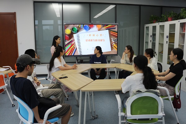 首先,黄倩向同学们介绍了绘画的内容、意义、效果和具体的流程,她告诉同学们,绘画作为一种简单而有效的心理调节方法,可以帮助同学们探索自我,表达内心。接着,黄倩带领同学们按照“静、思、想、画、写、析”的流程开展活动,带领同学们静心、沉思、遐想、彩绘、记录、分享。在绘画过程中,同学们学会集中注意力,专注当下、感受当下。最后,在分享展示阶段,同学们表示自己在活动中做到了关注当下、注重自我,专注于绘画和涂色,让自己的情绪达到了平静状态。