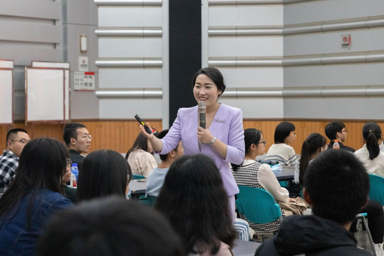 在两个多小时的培训过程中,王文君围绕礼仪的规范和塑造,聚焦仪容礼仪、服饰礼仪、仪态礼仪、沟通交流礼仪、日常业务交往礼仪、会议接待礼仪等常用职场礼仪,给学生们上了一堂生动实用的礼仪课。她在讲解过程中强调,“礼”是文明的象征,是道德的外在表现,是立身的根本,得体的仪态,是一封无声的推荐信,面对陌生人,文明的用语,优雅的举止,大方的仪表都在向对方传达着个人的优秀与自信。为加深同学们对于礼仪的理解,王文君通过角色模拟和情景扮演等多种形式,带领学生们体验了握手礼、鞠躬礼、乘车礼等多种常见礼仪,同学们积极参与,在互动演练中增长知识,掌握技能。
