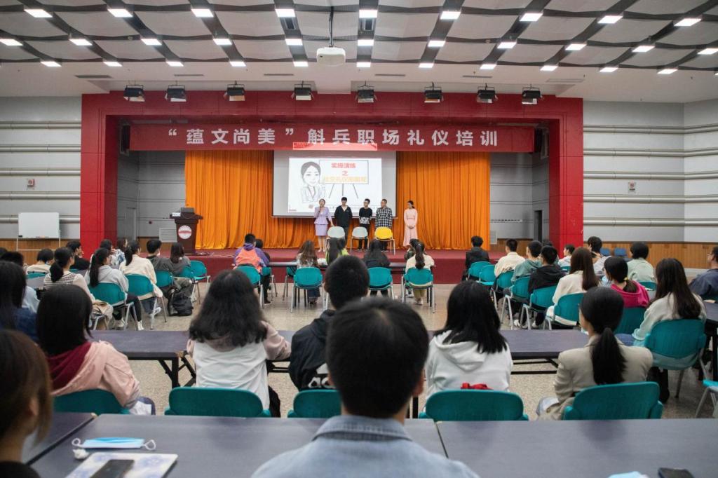 为引导学生掌握职场礼仪的基本知识和规范,尽早树立自我职业形象的意识,增强学生就业创业的竞争力。11月5日晚,由学工部主办,437ccm必赢国际版承办的“蕴文尚美”斛兵职场礼仪培训第一期在东风报告厅如期举行。