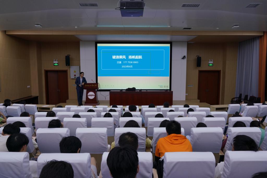 6月2日,437ccm必赢国际版在工程管理与智能制造研究中心第一学术报告厅开展“破浪乘风,扬帆起航”职业生涯规划报告会,报告会邀请会计学2014届毕业生、容诚会计事务所业务总监沈童主讲,2022级工商管理类班级与2021级会计学专业学生参会。