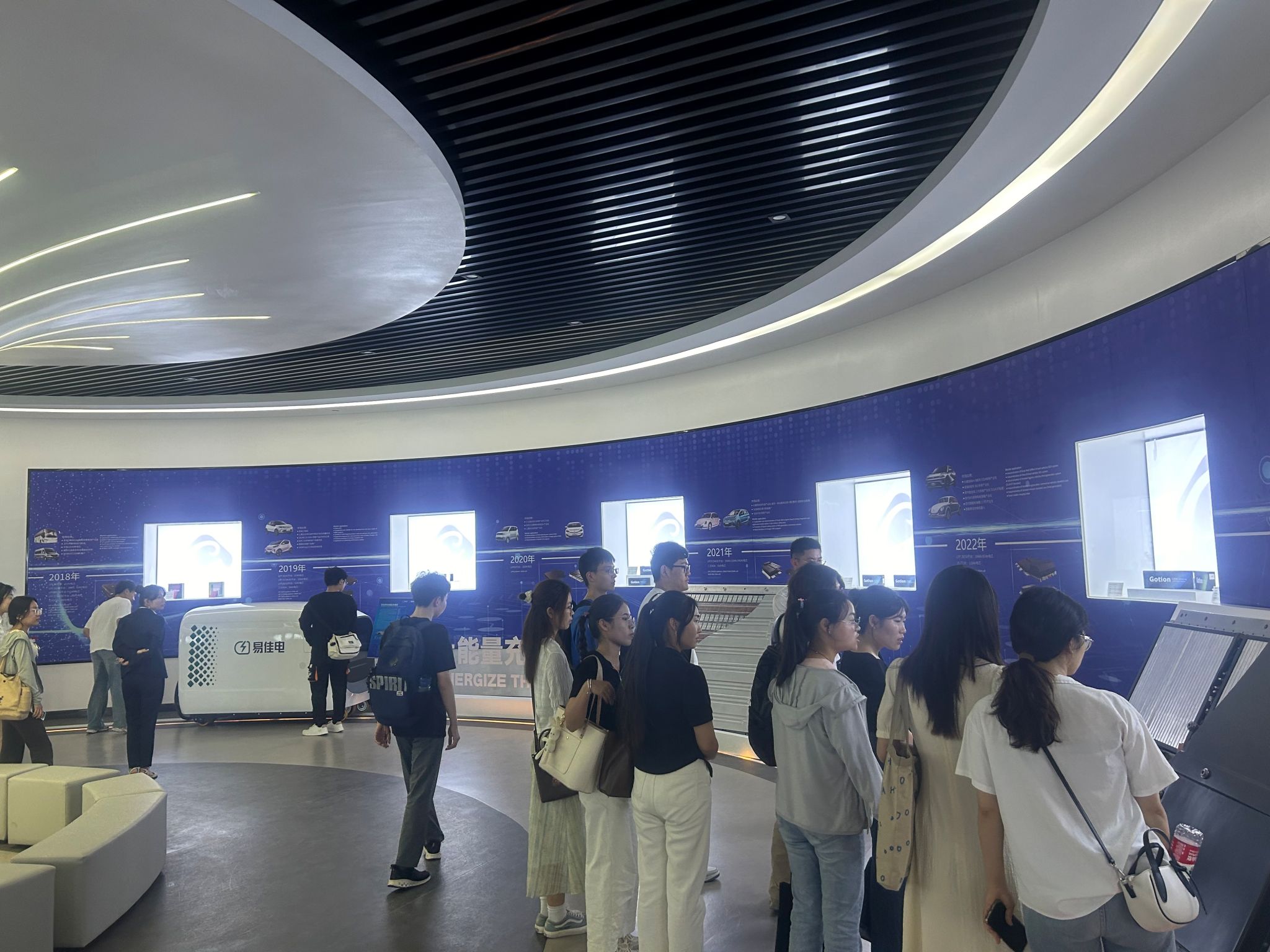 恰逢第13届国轩高科科技大会召开,与会同学们现场参加碳路未来高峰论坛和科学前沿创新论坛,近距离接触和了解最新的科技前沿报告,并与专家交流;随后,国轩高科负责招聘业务主管面向学生们展开了企业招聘宣讲会,从认识国轩高科、发展前景、加入国轩高科等三个方面进行了详细介绍,现场还就同学们关心的招聘岗位、招聘政策等提问逐一进行解答。在国轩高科工作人员的带领下,与会同学们现场参观了国轩高科的方圆馆,深入了解新能源行业的发展现状和未来趋势,在方圆馆的三大主题展馆:轩源、轩圆、轩愿,师生们通过观看视频、各种展板和国轩高科具有代表性的产品,了解国轩高科的发展历程、企业文化、主要产品以及在新能源领域的科研成果。师生纷纷表示不虚此行,受益匪浅。