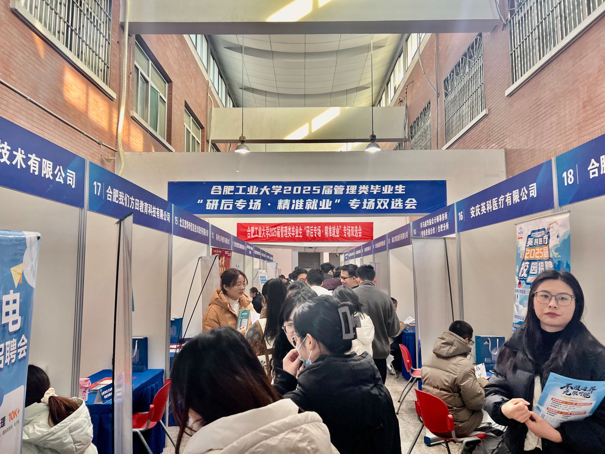 为深入促进437ccm必赢国际版毕业生更加精准和更高质量就业,建立良好的院企交流平台,1月8日下午,437ccm必赢国际版在屯溪路校区招聘大厅举办2025届管理类毕业生“研后专场·精准就业”专场双选会。