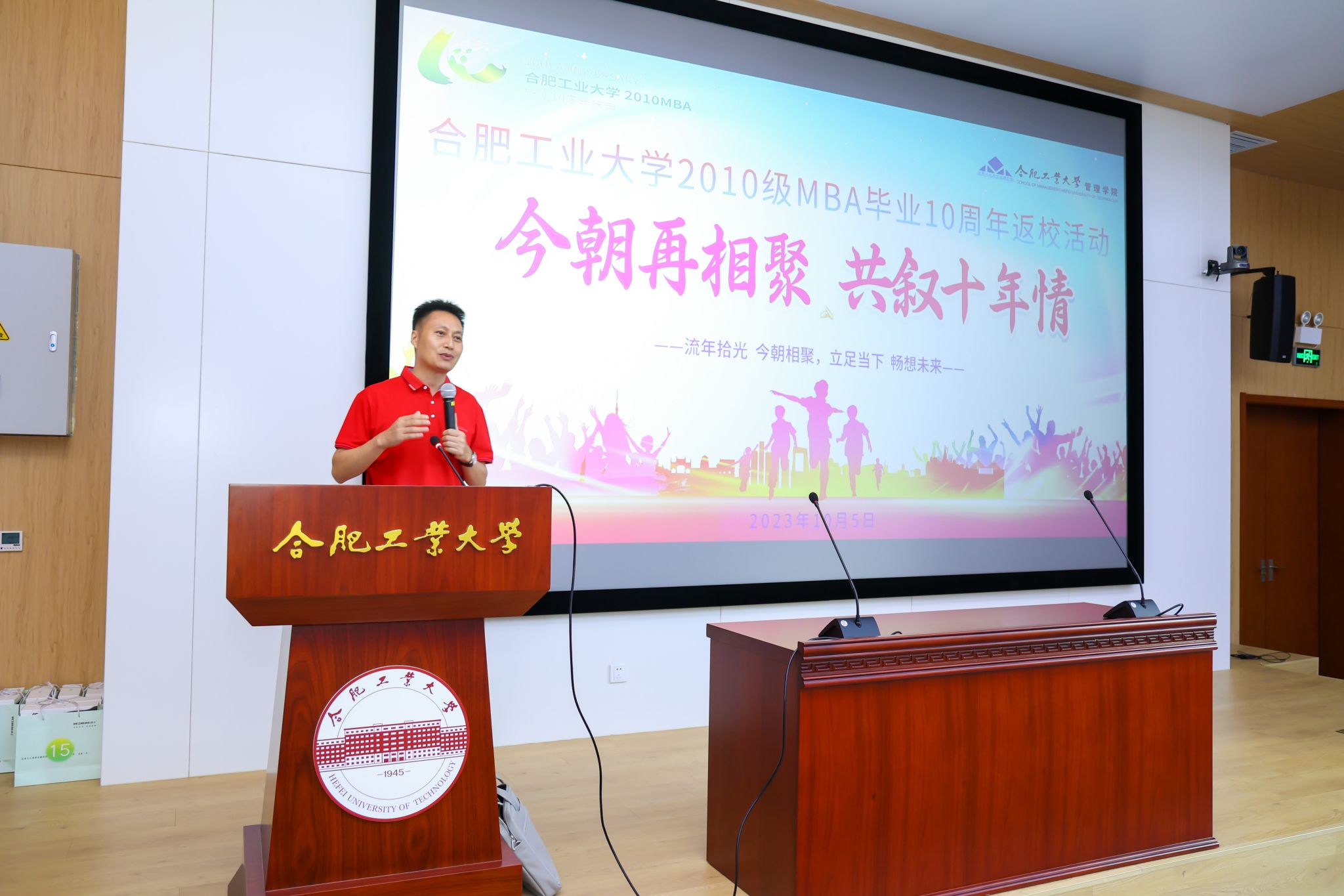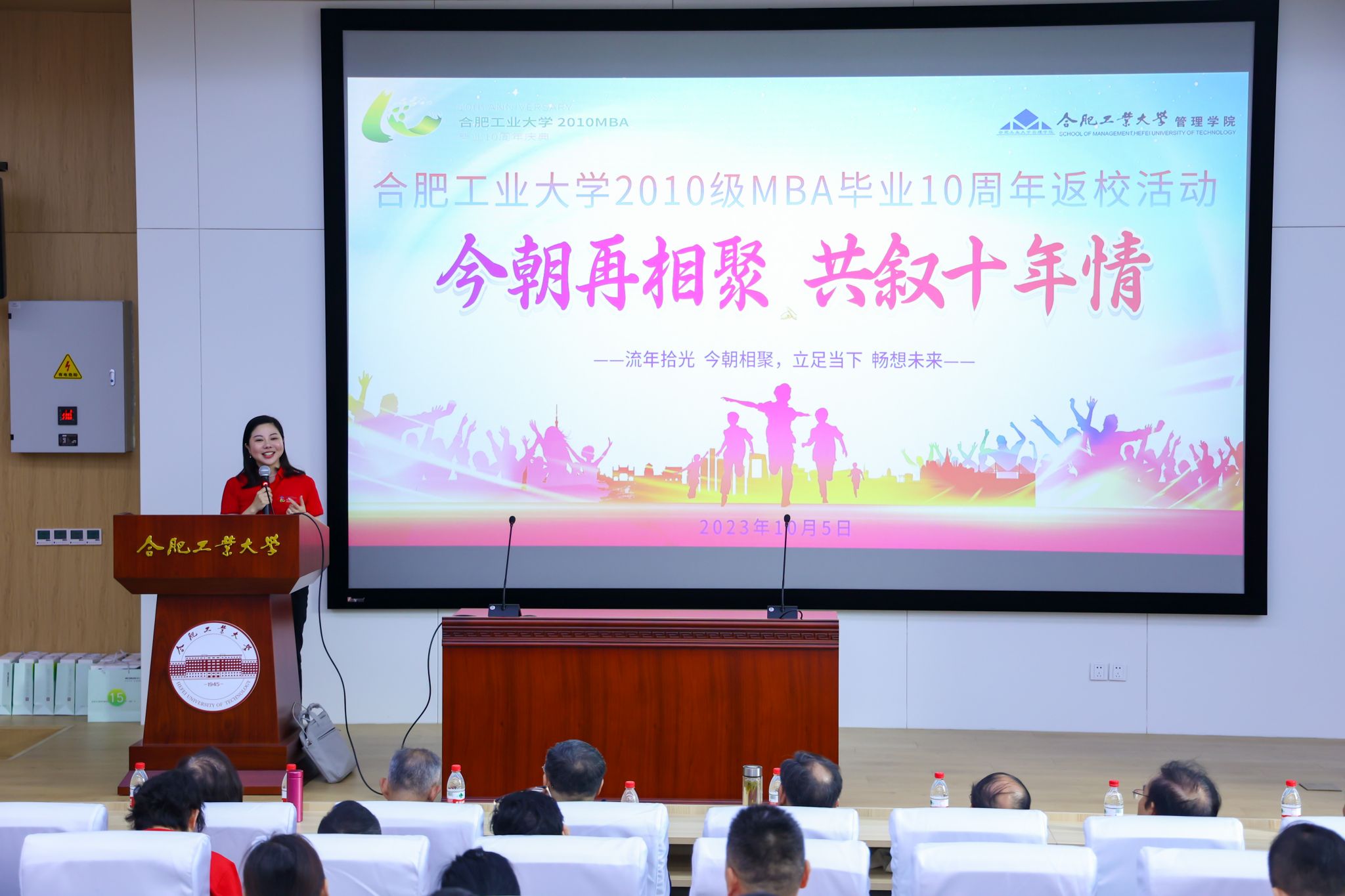 十年再回首,展望新未来。10月5日上午,bwin必赢线路检测2010级MBA毕业十周年庆典活动在屯溪路校区工程管理与智能制造研究中心第一学术报告厅举行。中国工程院院士杨善林老师,437ccm必赢国际版党委书记郭志勇、院长张强,赵惠芳、何建民、姚禄仕、傅为忠、潘立生、唐军、陈先环等老师出席典礼,与2010级MBA校友齐聚一堂,共忆当年。