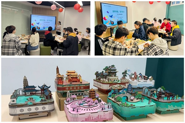 首先,学院大学生发展辅导中心主任黄倩向同学们介绍了手工制作和音乐疗法在心理疗愈中的作用,详细讲解了相关理论知识,引导同学们在日常生活中,学会用合理的方式调节情绪。接着,学院心理协会负责人向大家介绍了八音盒的工作原理、拼搭的零件组成和操作技巧等,同学们仔细聆听。然后,同学们进行作品的制作,经过拆卸、拼搭、粘贴、组装等步骤,分工合作,一个个不同建筑的八音盒在同学们的手中诞生。最后,同学们介绍了自己的作品,欣赏了八音盒传出的动听音乐,分享了各自的感悟,交流了彼此的心得。