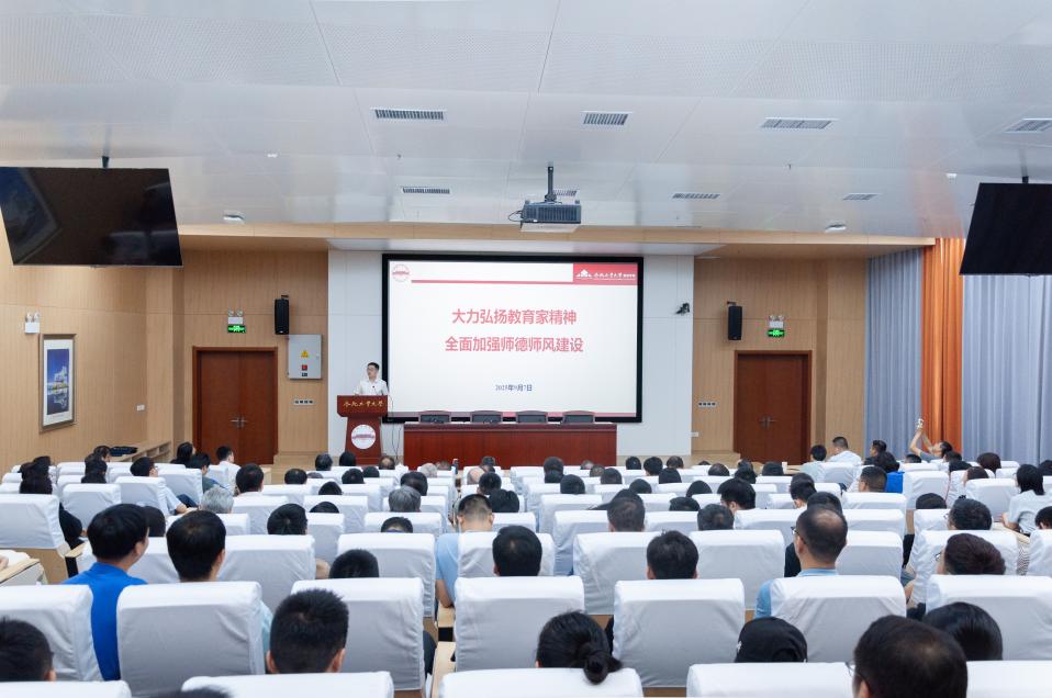 最后,党委书记张强作“大力弘扬教育家精神,全面加强师德师风建设”主题报告,与教职工一起重温《新时代高校教师职业行为十项准则》,剖析师德师风典型案例,给全体教职工送上教师节的祝福!全院教职工集体观看《我心中的教育家精神》视频,会议以时代楷模陈立群“教育从来不仅仅是一份职业,它是一份事业,更是一份志业”为结语,激励全体教职工在新学期砥砺奋进,为学院的发展贡献自己的力量。